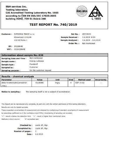 Ball shaped lollipops with cannabis extract, caffeine and taurine, 60 pieces in a jar. Each piece is 25g.