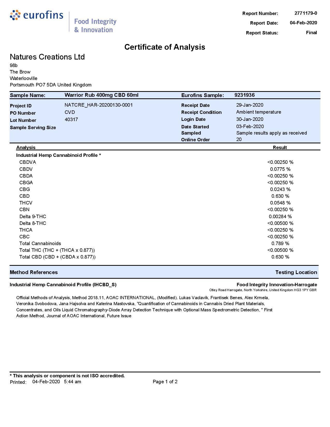 Prunus dulcis (Sweet Almond oil), Calendula officinalis (Marigold infused oil), Symphytum officinale (Comfrey leaf oil), Cannabis sativa L. extract, Cera alba (beeswax), Zingiber officinale (Ginger), essential oil Piper nigrum (Black Pepper), essential oil Curcuma longa L. (Turmeric root), Curcumin C3 Reduct, Capsicum frutescens L. (Cayenne fruits), Oleoresin.